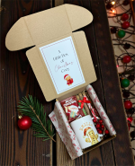 Die Geschenkbox ist zusätzlich mit saisonalen Dekorationen wie Tannenzweigen, roten Beeren und festlichen Akzenten gefüllt, die sofort für weihnachtliche Stimmung sorgen und das Auspacken zu einem besonderen Erlebnis machen.